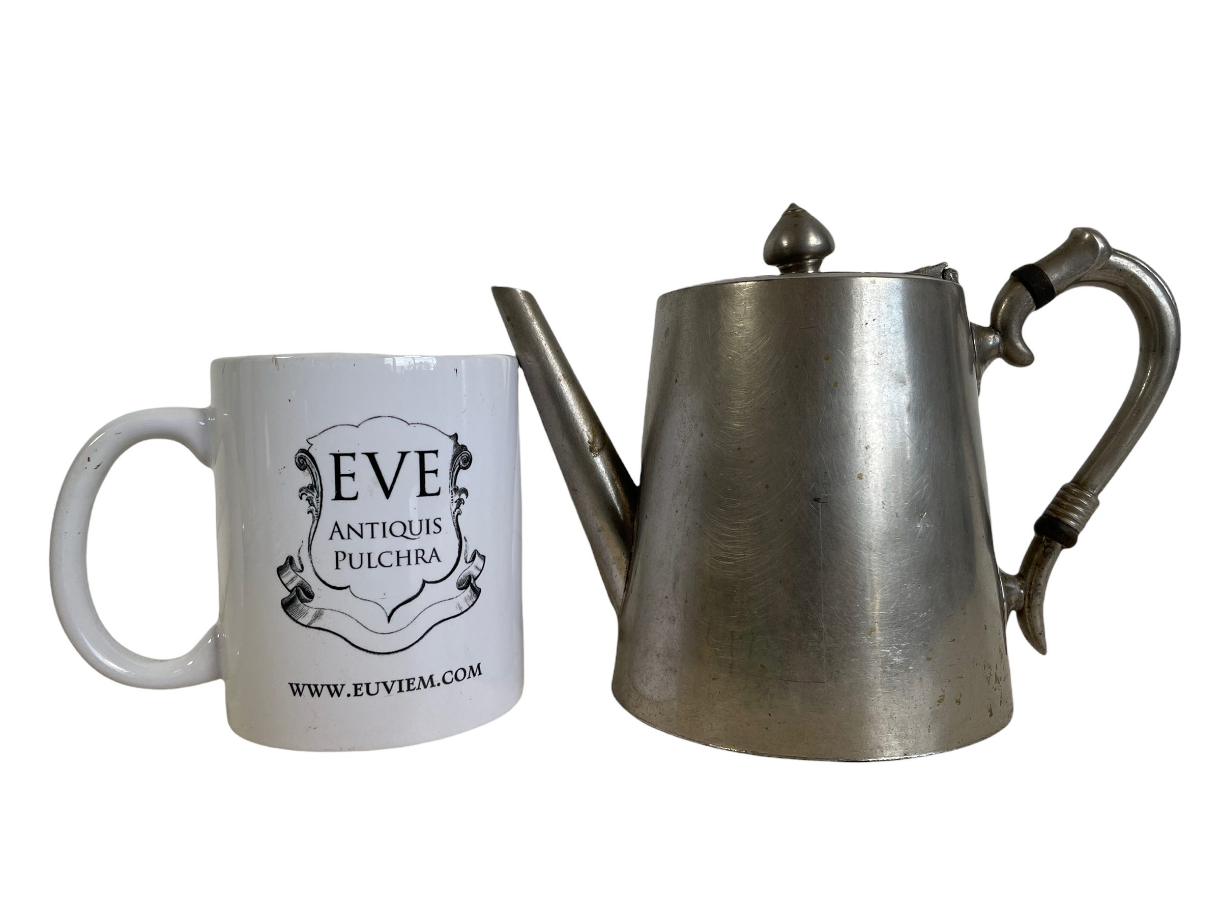 Condition: in antique well used condition, scratches, dusty, tarnish and patina, lid is a bit bent, would suggest maybe an ornament rather than a functional coffee pot, please see all pictures