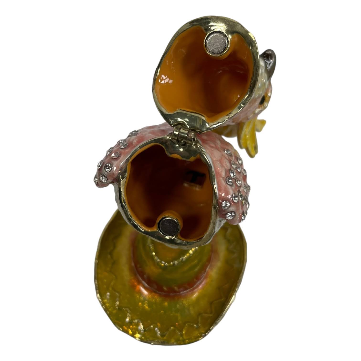 Materials: metal, enamel, rhinestones