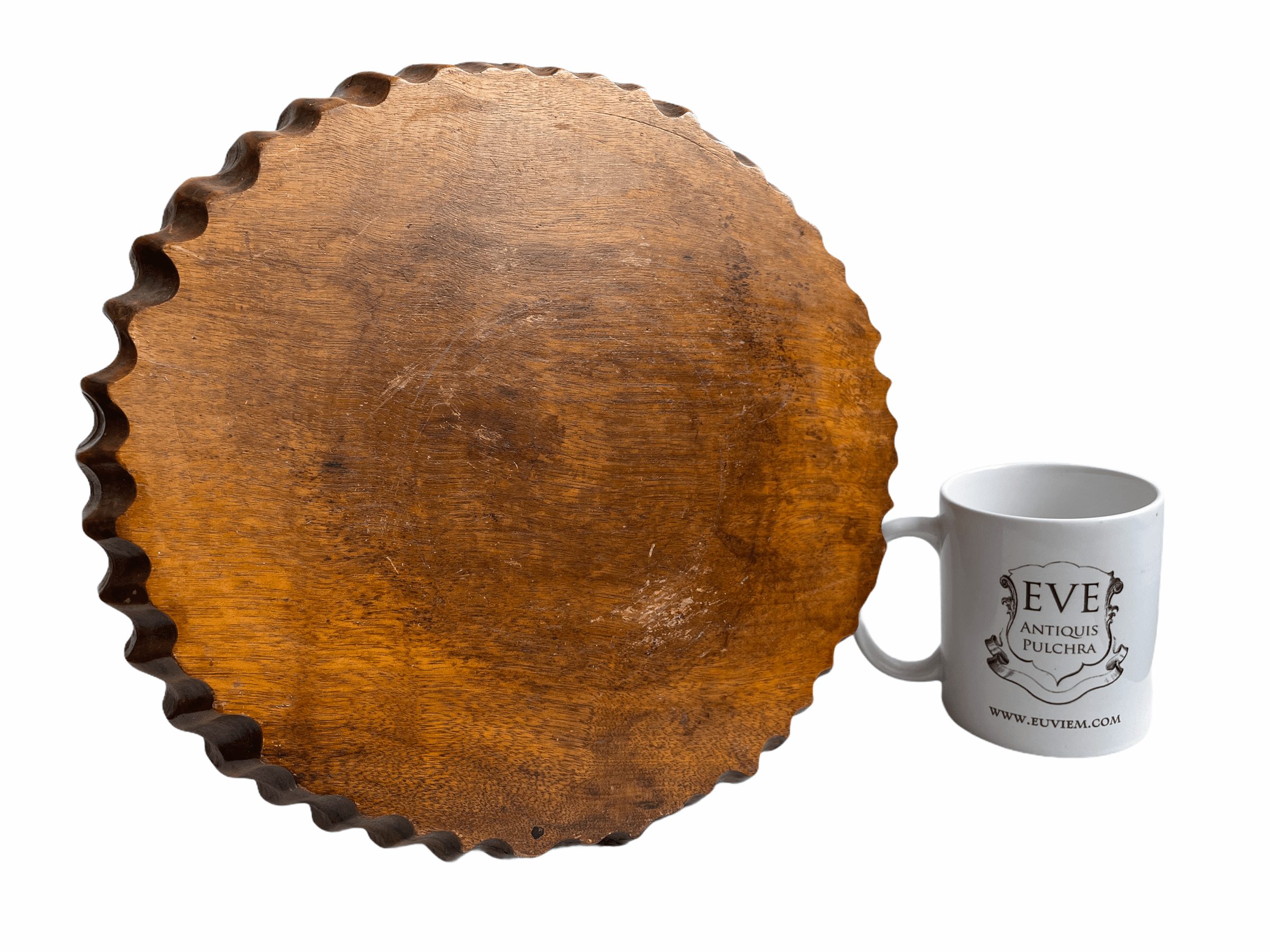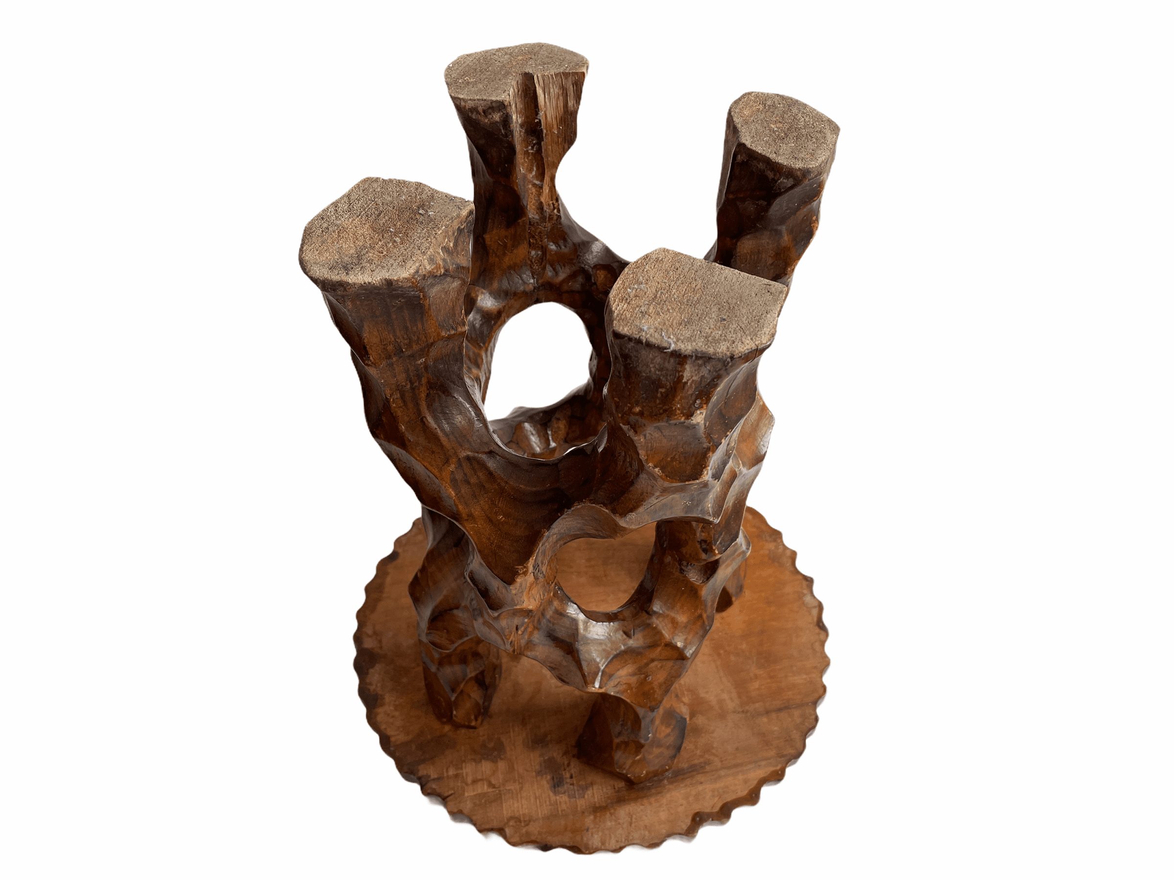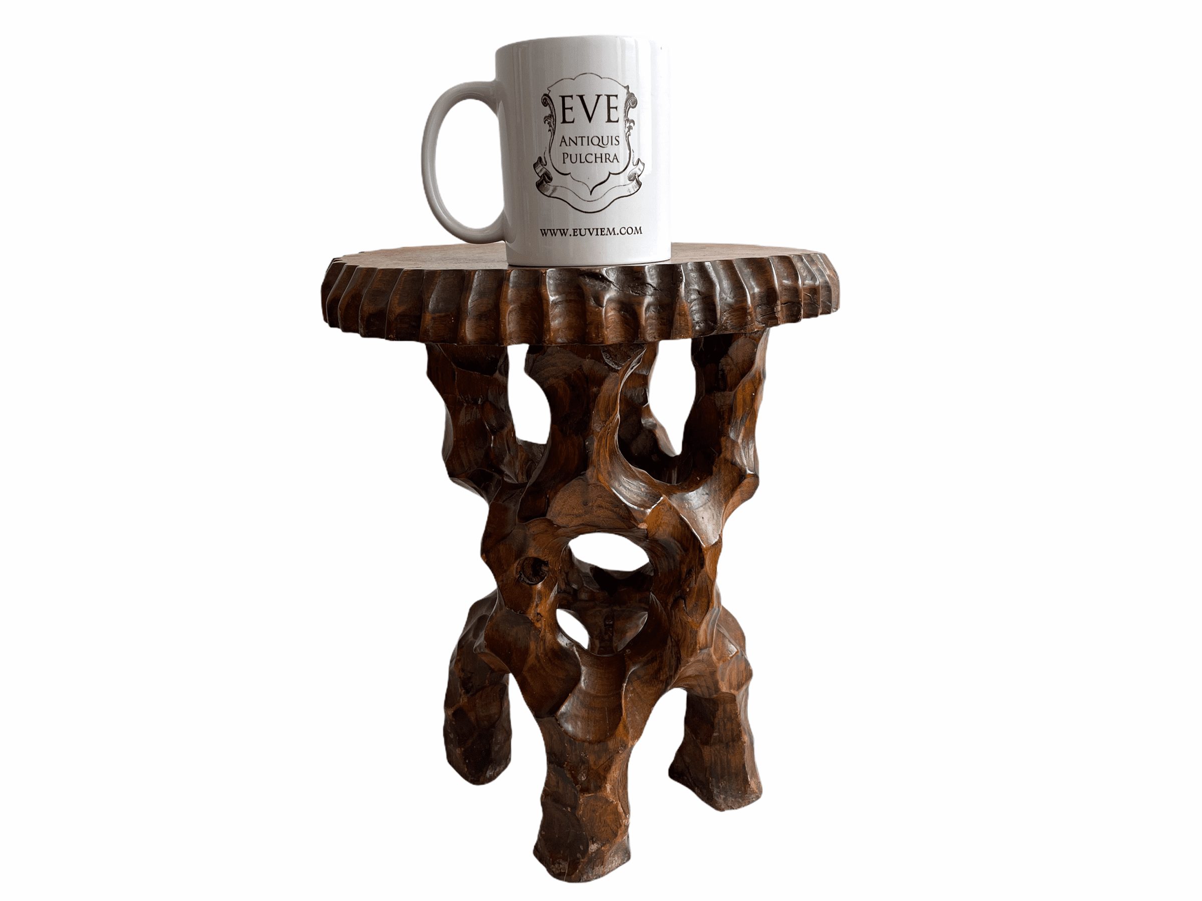A nicely made French vintage dark wooden stool with an unusual construction. We think the legs were originally carved from a single piece of wood. In fair condition for age. Strong and stable repair to one leg.