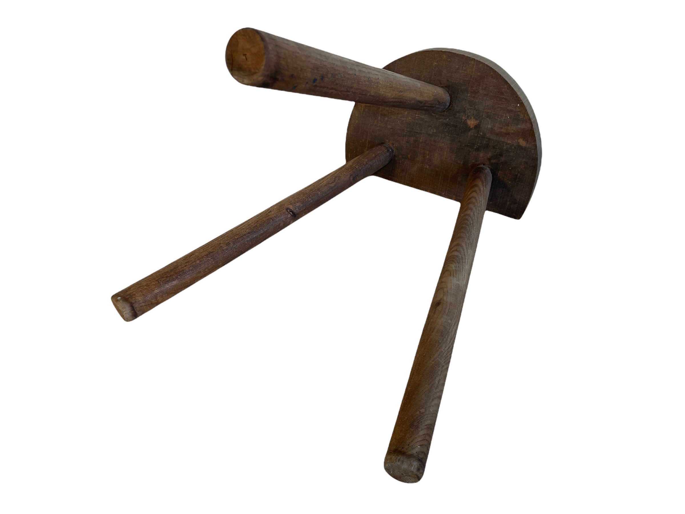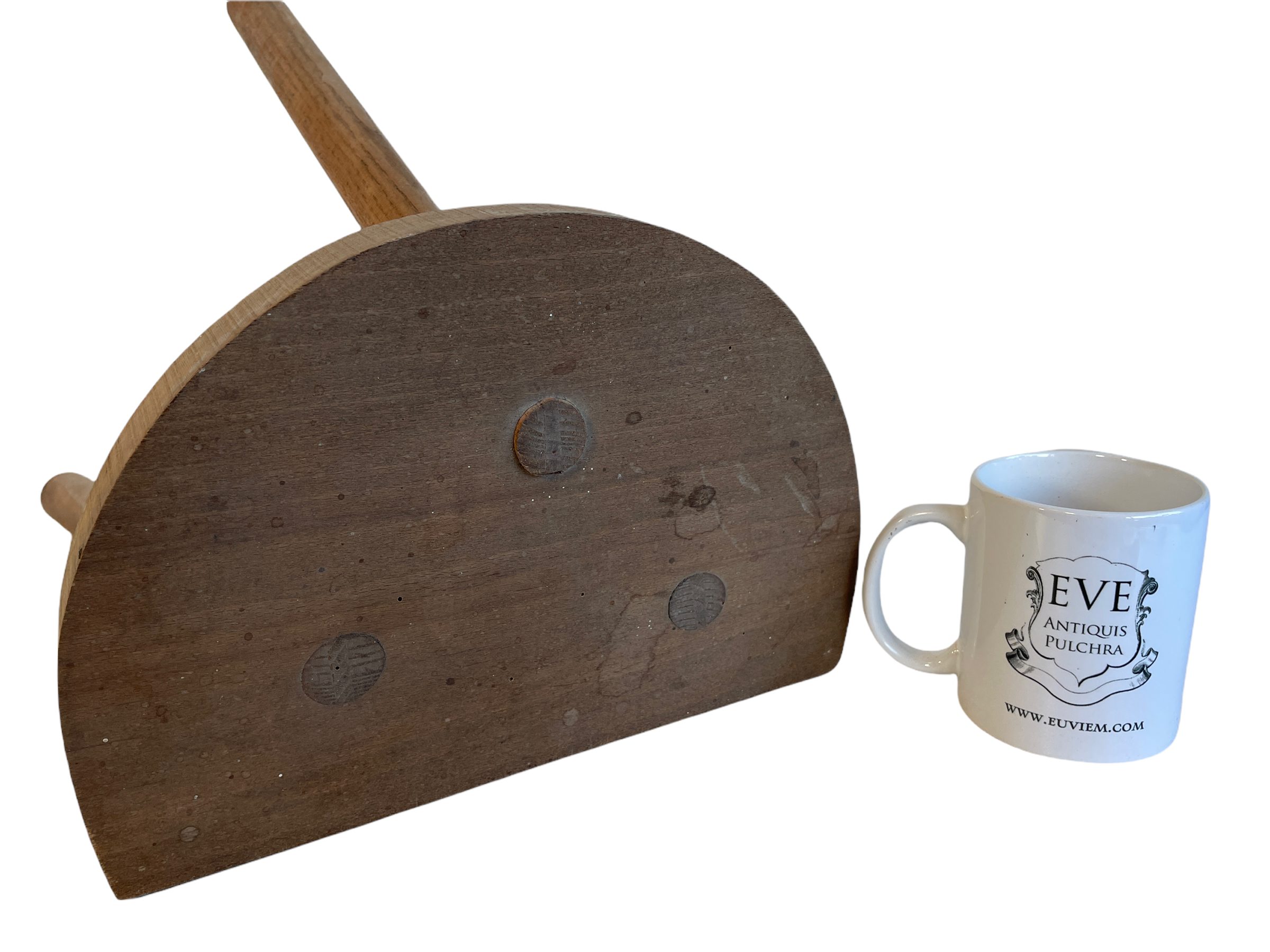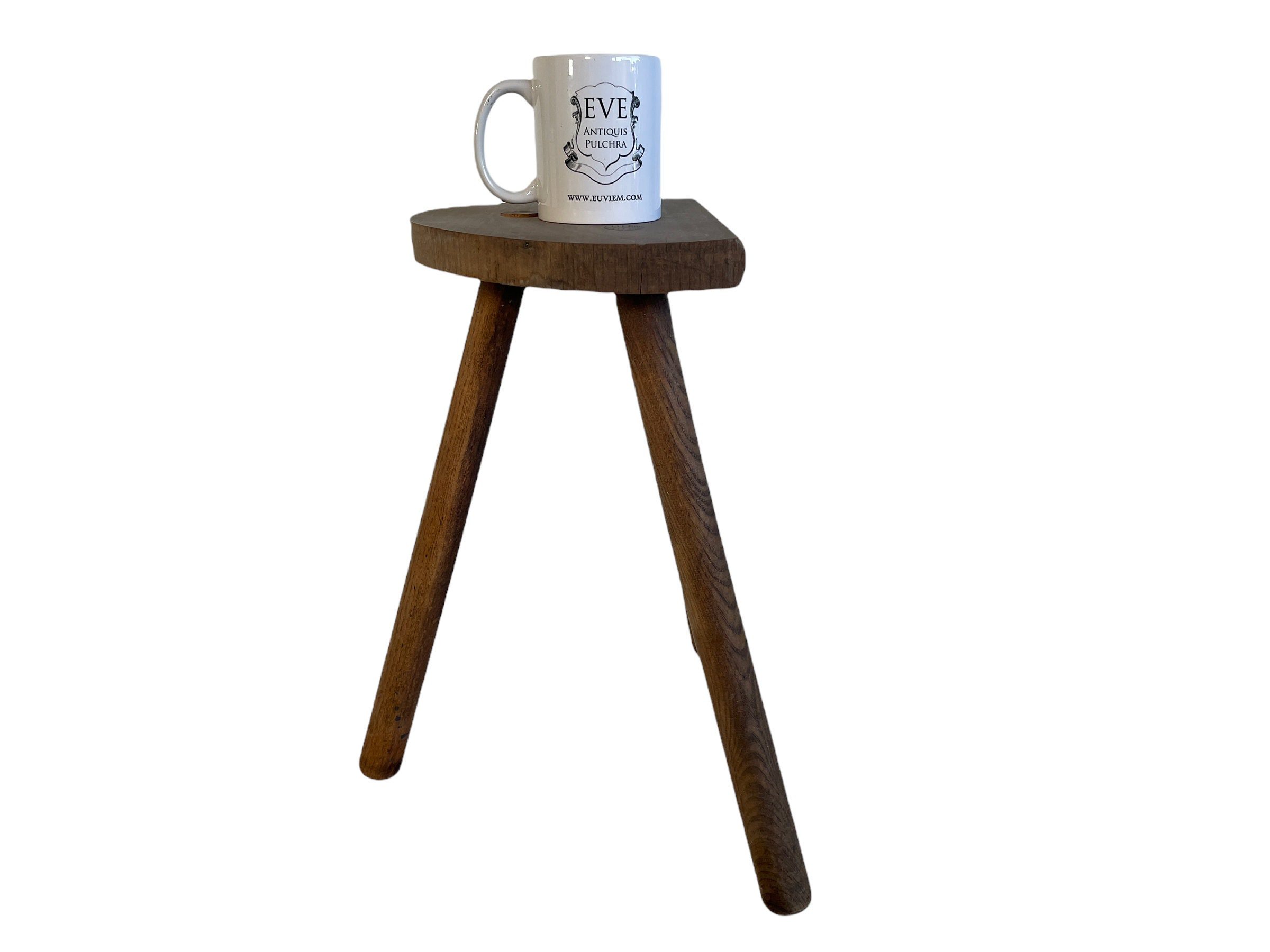 A vintage French traditional wooden milking stool. With a traditional Normandy style D shaped seat.