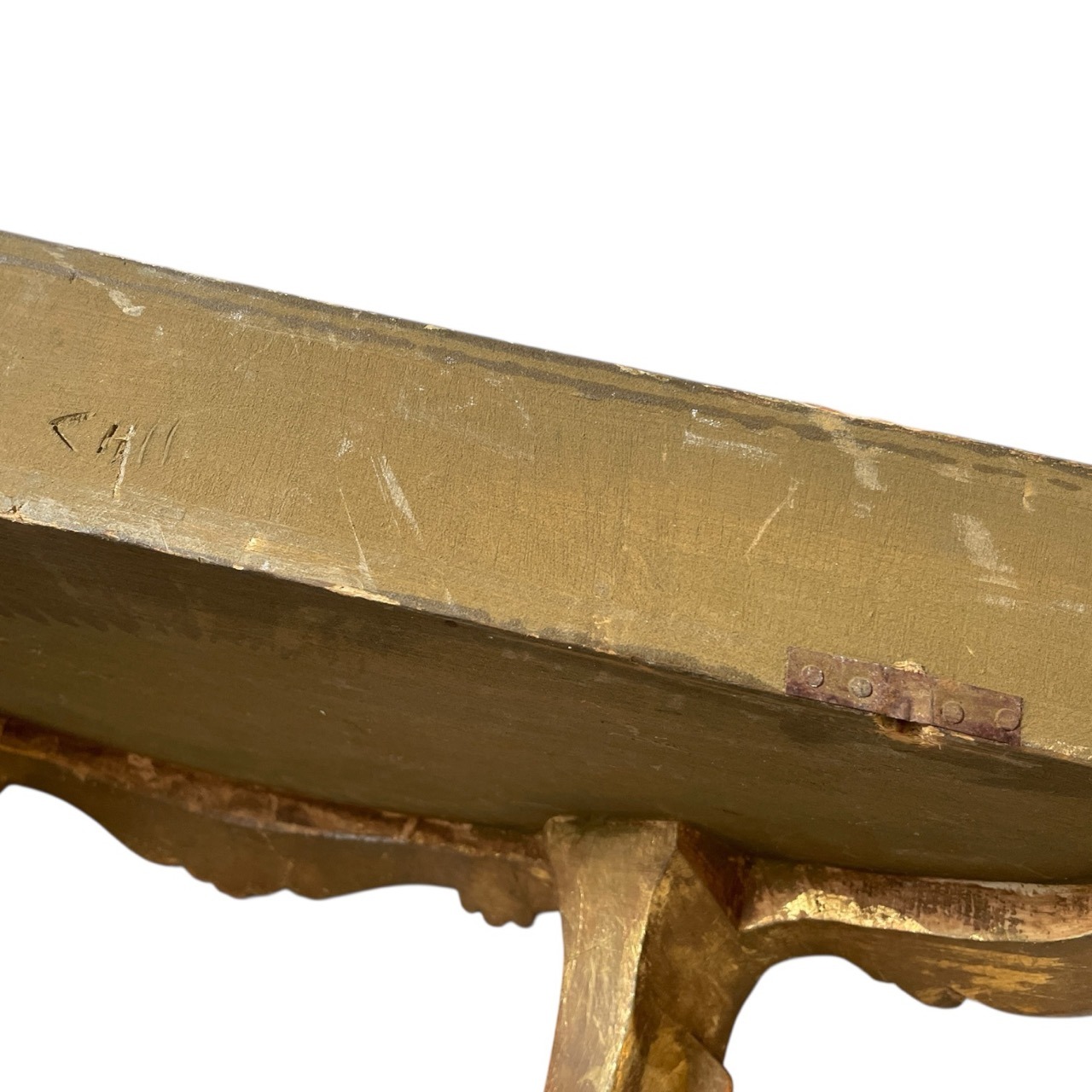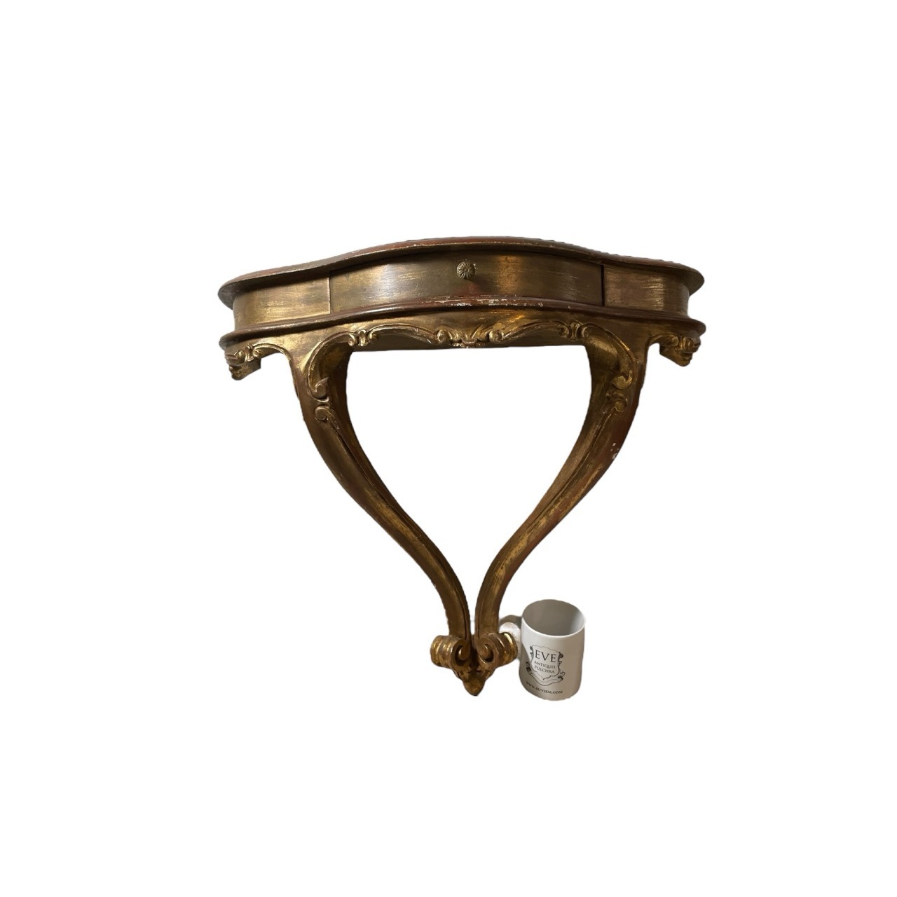 This is a vintage Florentine small wooden shelf. Made from wood. Heavily worn. Signs of age as detailed below. We always have a big selection of Florentine furniture and fittings, old and not so old, see the link below.