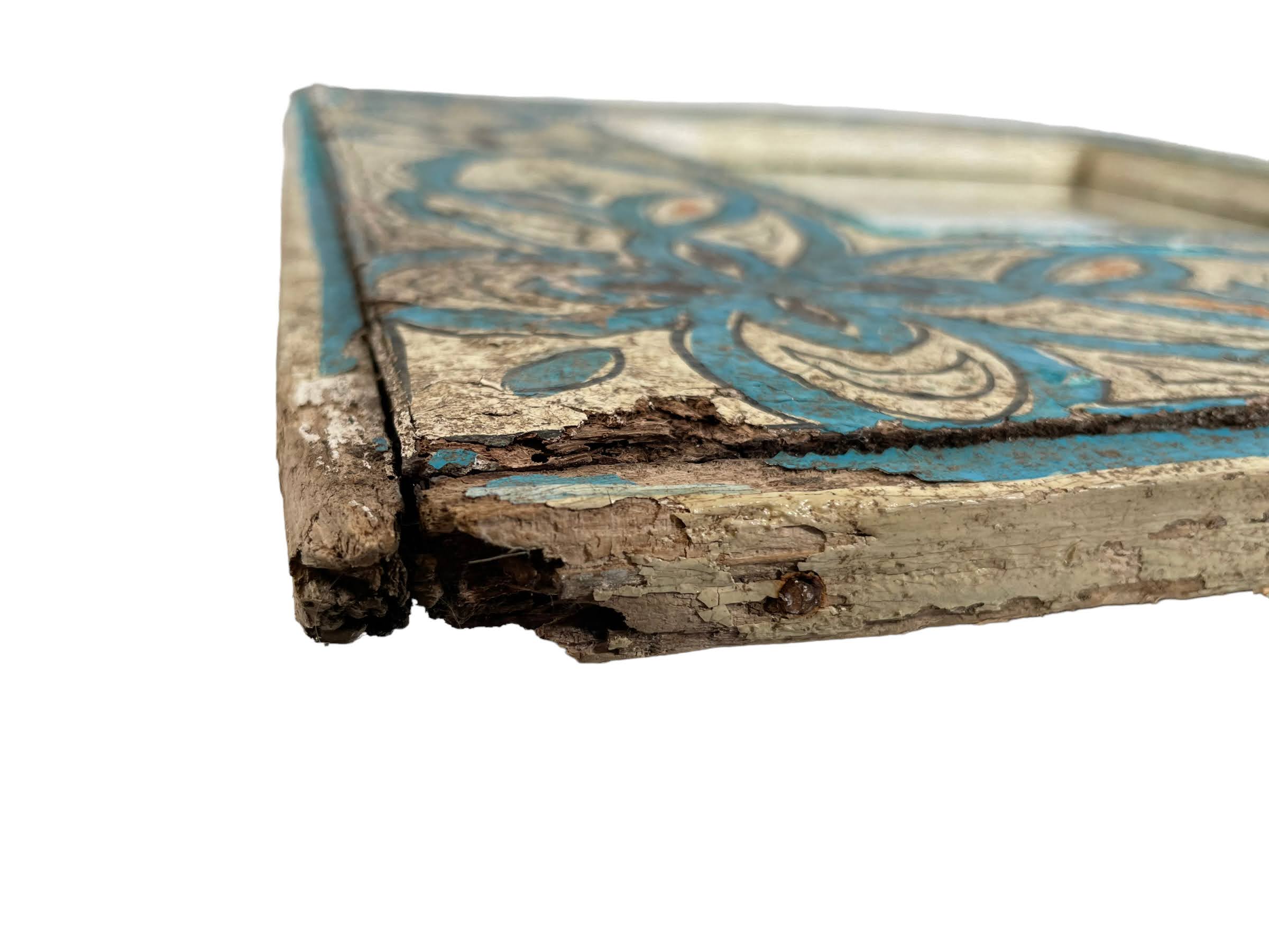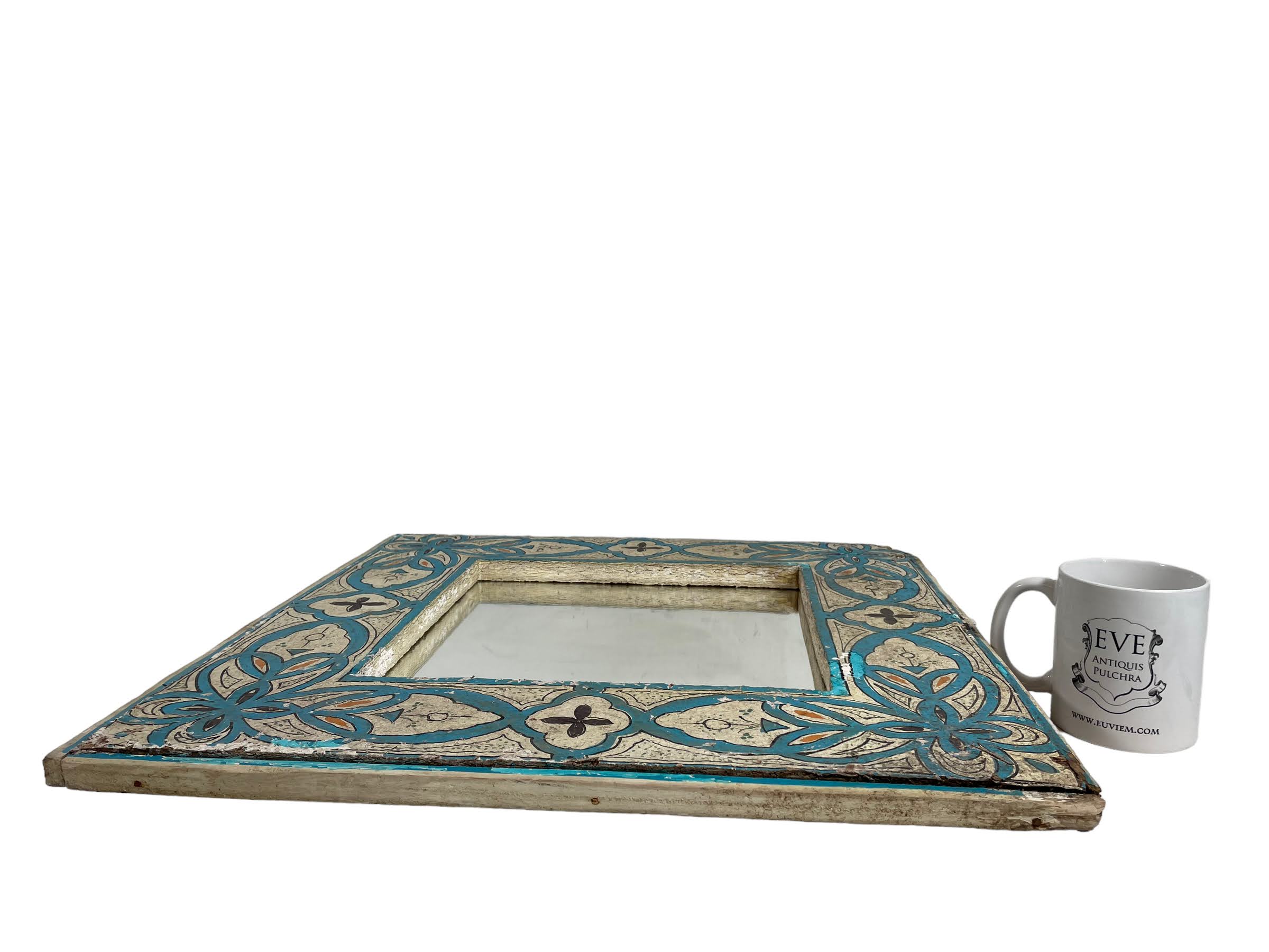 A vintage Moroccan wall hanging mirror with some damage. See notes on condition below. Note we cannot insure the glass on these for damage in transit. If it should get broken we can refund up to ?40 for a replacement piece of mirrored glass on production of a receipt. We cannot cover fitting. Alternatively you can return for a full refund.