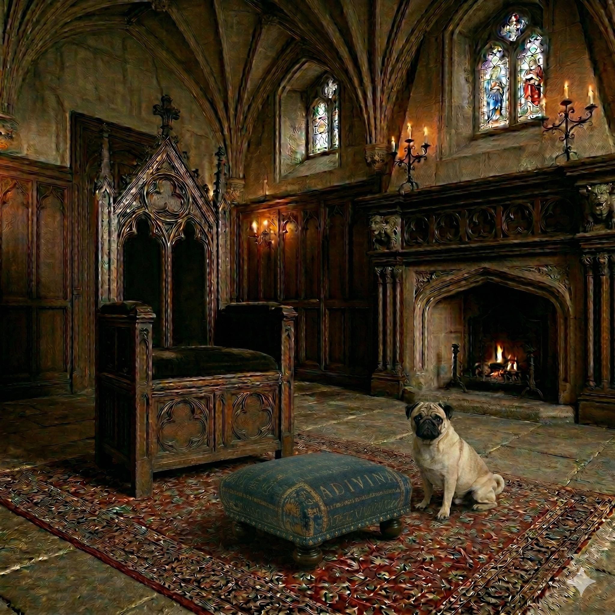 This particular footstool features a tapestry with Spanish text and decorative motifs, suggesting a possible connection to Spanish or Latin American artistic traditions, or perhaps a revivalist style from the late 20th century. The use of brass tacks and ball feet are common features in furniture design from the Victorian era and later, indicating a blend of historical inspiration with more contemporary craftsmanship. The prominent display of “ADIVINA” (which means “guess” or “divine” in Spanish) adds an intriguing element, possibly referencing a literary work or a poetic theme.