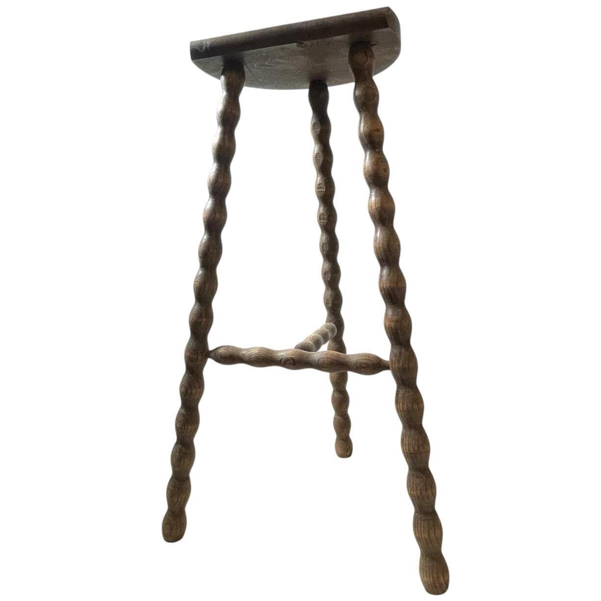 An always popular vintage French traditional wooden tall kitchen stool. Also a great pot stand. We call these DT stools. D for the seat and T for the bottom brace. Some signs of previous use as detailed below. Structurally good. Always 500+ other vintage stools in store!